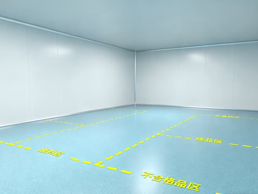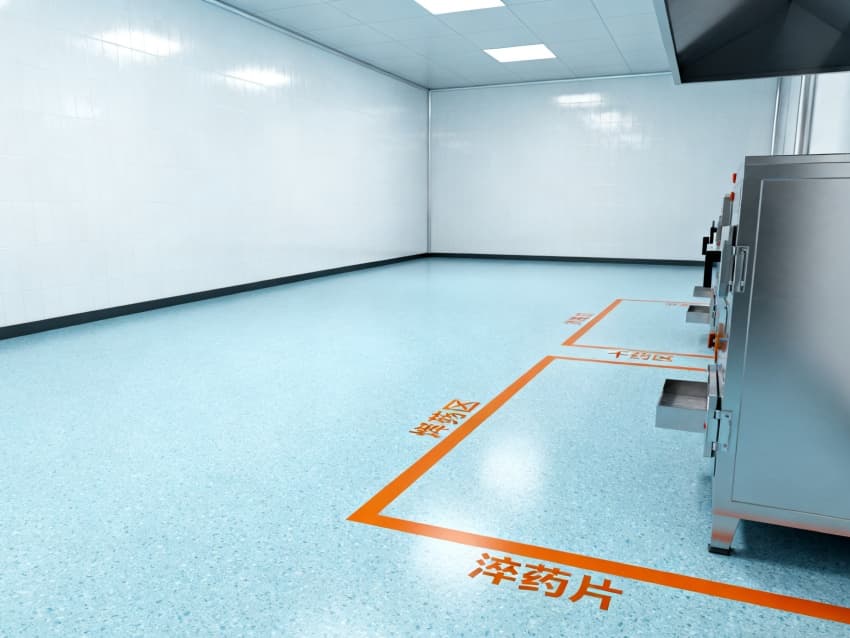 车间整体遵循医药级洁净设计标准,地面采用浅蓝色抗菌防滑环氧地坪,通过无缝一体化施工工艺,彻底消除药渣残留隐患与卫生死角,其卓越的耐腐蚀性与易清洁特性,能够从容应对中药清洗、切制等高频清洁作业;四周白色防尘抗菌墙面经过特殊工艺处理,具备优异的光线漫反射性能,搭配顶部科学布局的柔和照明系统,既保证操作人员能够清晰观察药材炮制过程中的性状变化,又为生产环境构筑起一道洁净无菌的安全屏障。