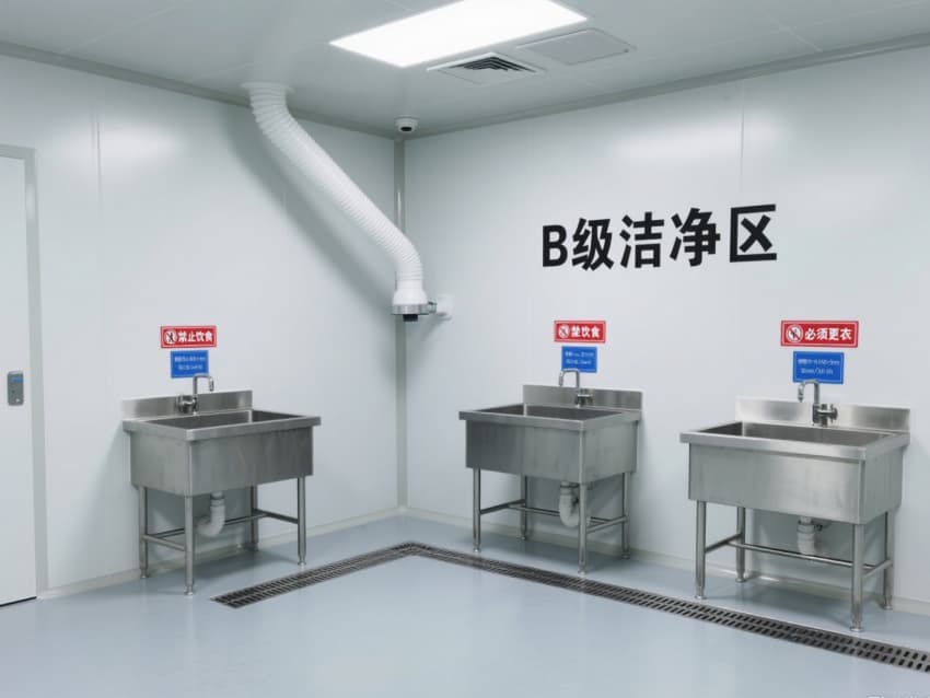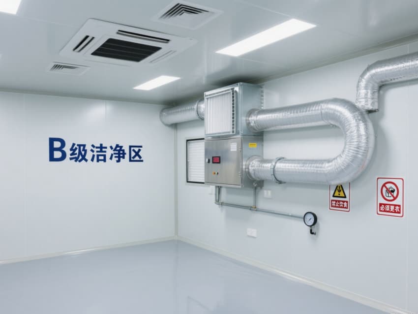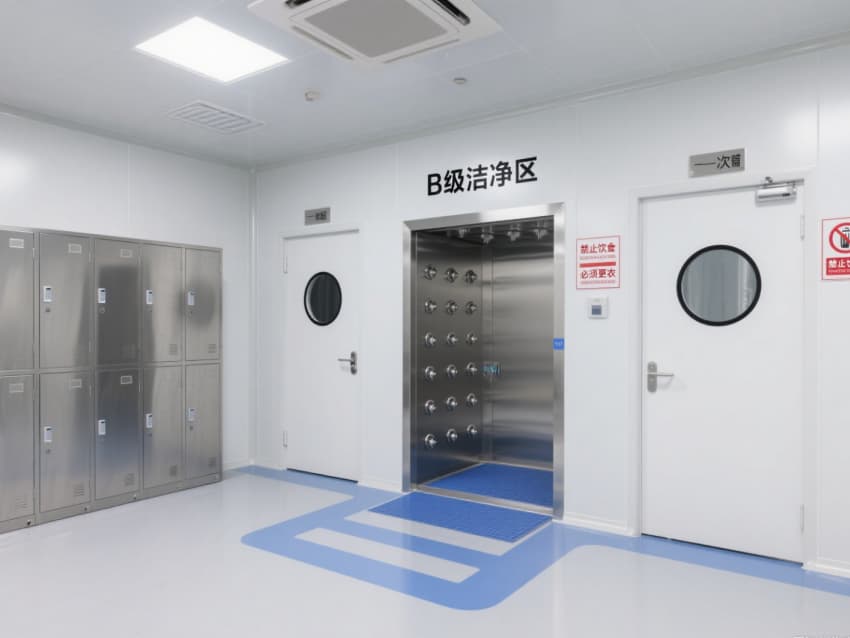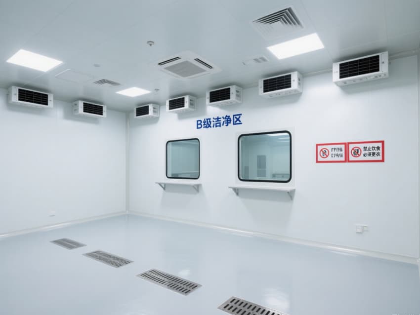 顶部嵌入式高效送风口形成垂直层流,配合侧下回风系统实现每小时15-25次空气置换,恒温恒湿系统精准控制温度(18-26℃)、湿度(45-65%)。不锈钢洁净门窗与传递窗采用高气密性密封结构,嵌入式LED洁净灯提供≥300lux均匀照明,全方位营造安全、精准的生物制药生产基础环境。