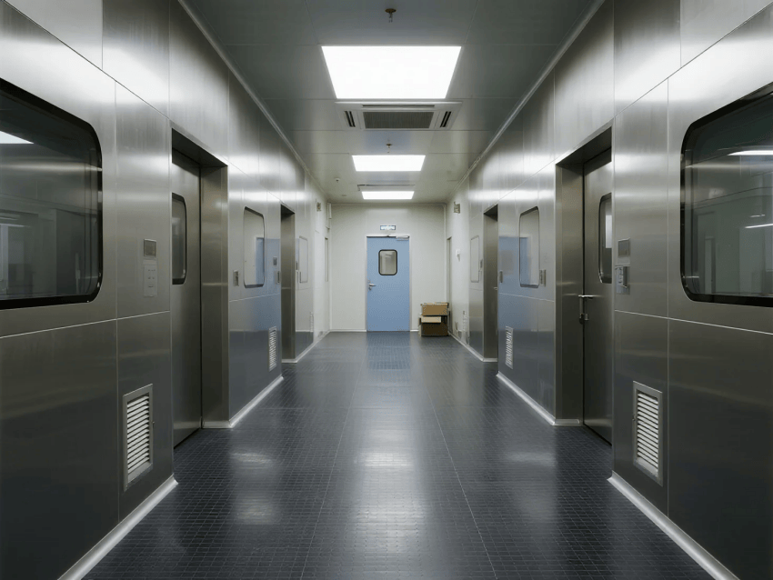 空气净化:天花满布FFU+ULPA超高效过滤器,换气次数≥60次/h,维持0.45m/s垂直层流;