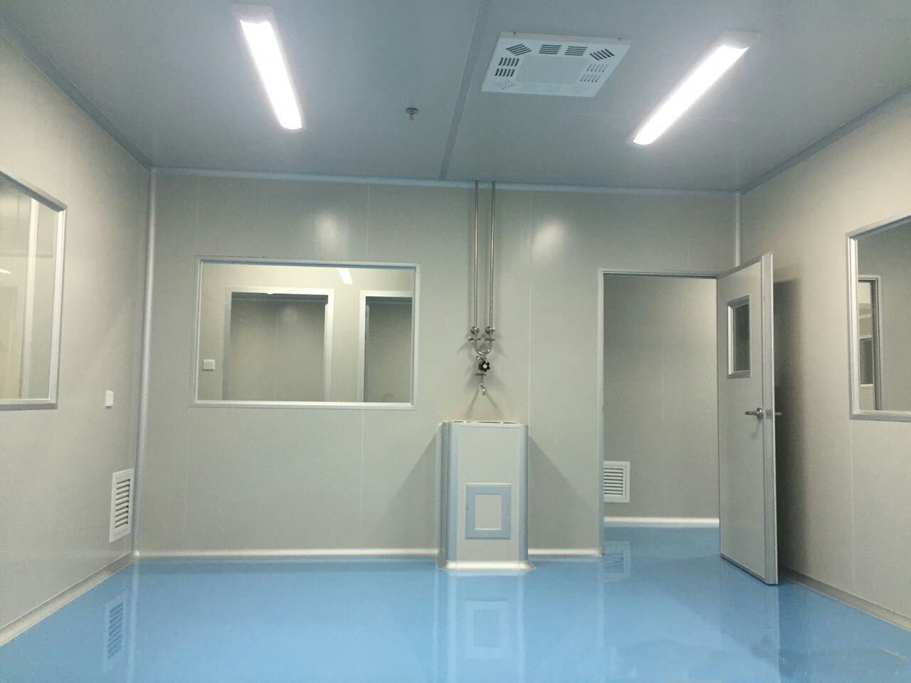 (1)操作室地面:1)刚性地面。刚性地面多为水磨石制造,其整体性好、光滑、不易起尘、易擦洗清洁,而且经久耐用;2)涂料地面。常采用环氧自流坪地面,表面光滑、不易起尘、耐腐蚀可擦洗,但材料的硬度较低;3)弹性地面。使用聚氯乙烯弹性塑料制造,地面光滑、不起尘、耐腐蚀可擦洗,但不耐紫外线长期照射,不耐冲击。(2)操作室墙面:1)砖墙+涂料(乳胶漆、仿磁漆、油漆);2)板材(彩钢板、其他材料板)。(3)天花板:1)硬质(混凝土);2)软质(轻钢龙骨+板抹灰、石膏板,彩钢板);(4)操作室内门窗:1)门要能紧闭、平整、简单,原则上朝洁净级别要求高或室内方向开启,不采用木质材料;2)窗应无缝隙,室内与墙面平,室外窗台应向下倾斜,不积尘。传递窗两边的门应连锁,密闭性好,易于清洁。