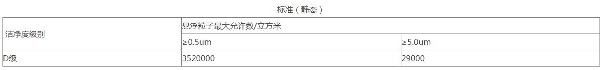 相符性认定办法及依据ISO14644-1,对洁净区悬浮粒子进行测试,依据测试结果,对洁净度级别相符性认定,确认洁净区级别符合设计要求。D级洁净区(静态)空气悬浮粒子的级别分别为ISO 8。在确认级别时,应当使用采样管较短的便携式尘埃粒子计数器,避免≥5.0um悬浮粒子在远程采样系统的长采样管中沉降。在单向流系统中,应当采用等动力学的取样头。测试仪器为尘埃粒子计数器;测试部位为空调净化系统送风口、各级洁净室。