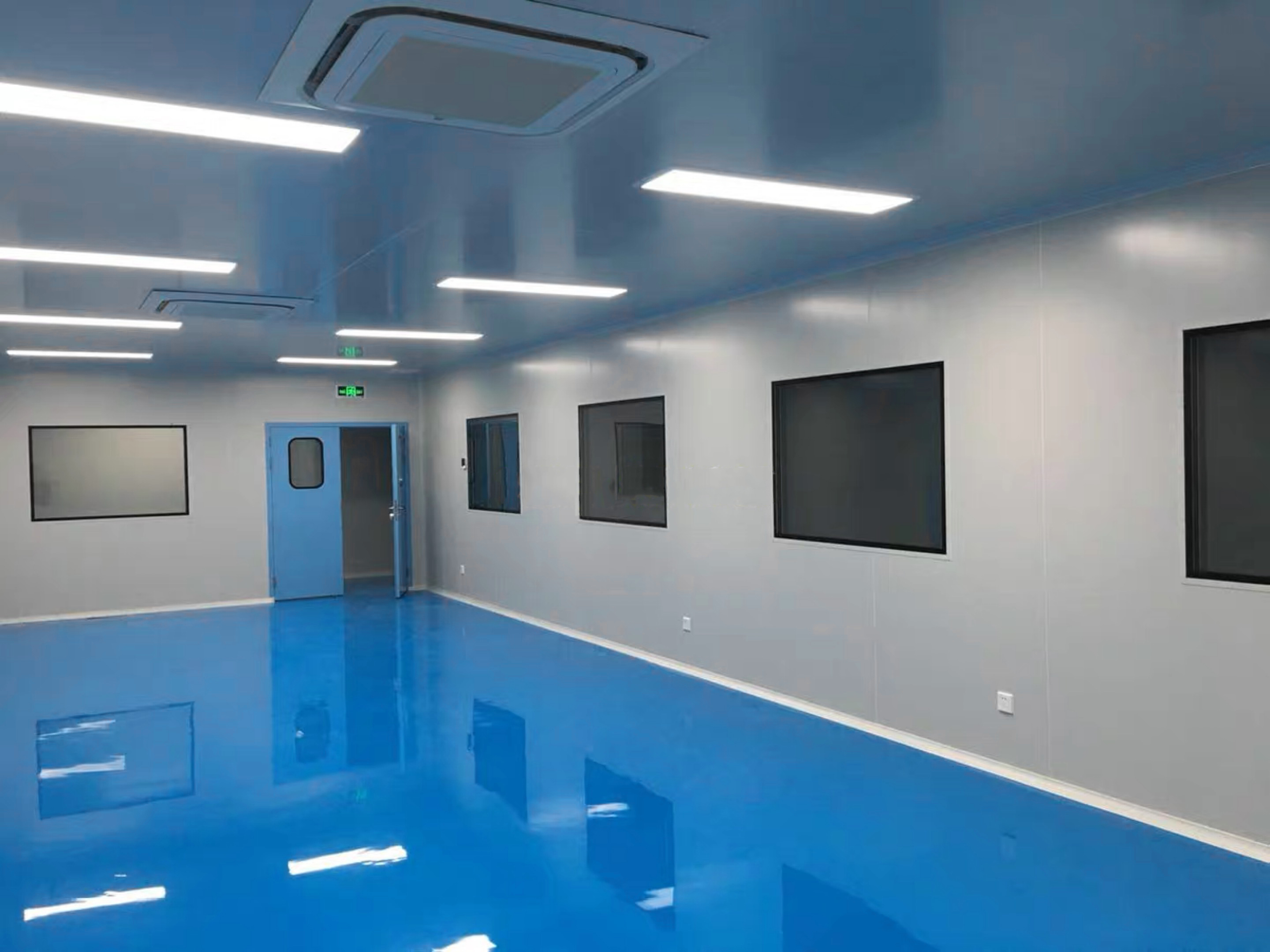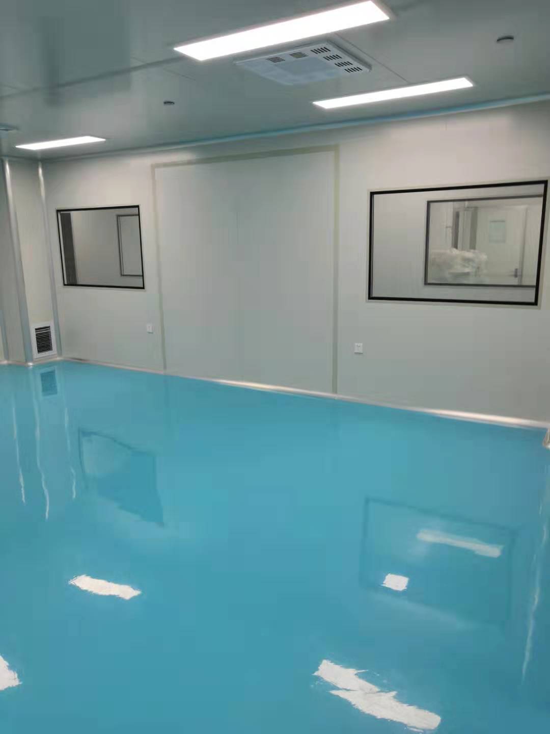 2、口服固体制剂生产车间车间内部墙体及吊顶均为彩钢结构,用中性密封胶密封缝隙;不锈钢圆弧进行衔接和密封,一般生产区全部为水磨石地面,净化区域为绿色环保环氧树脂自流平地坪。门框和密封窗框均采用异形铝材,洁净区安全门为正面玻璃—临时破开结构,在明显位置设有破门工具。主要管道设置于技术夹层,并对连接部位进行密封。