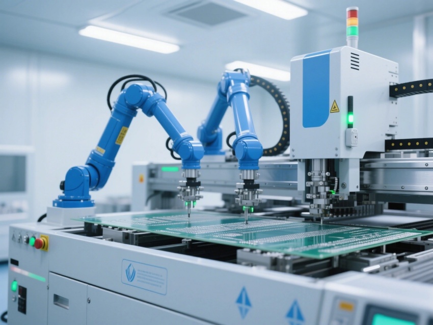 车间以银白与浅灰为基调,搭配亮黄警示线条,构建出无尘、高效的生产空间。
