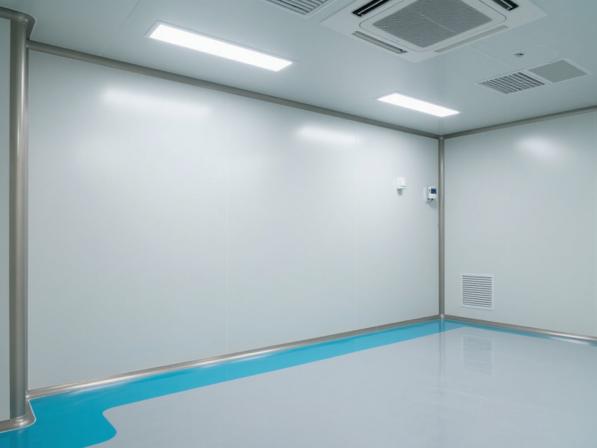 材料选择是洁净性能的核心保障。地面选用防静电环氧自流平,无缝拼接设计可杜绝积尘,且耐受化学试剂腐蚀,适配电子与医药车间需求;墙面采用彩钢板,拼接处用硅酮密封胶严密填充,确保气密性,表面光滑易清洁,符合卫生标准;吊顶采用铝合金龙骨搭配防尘石膏板,嵌入式安装洁净灯具与风口,减少卫生死角。门窗选用断桥铝材质,配备双层中空钢化玻璃与密封胶条,阻断外界灰尘进入。