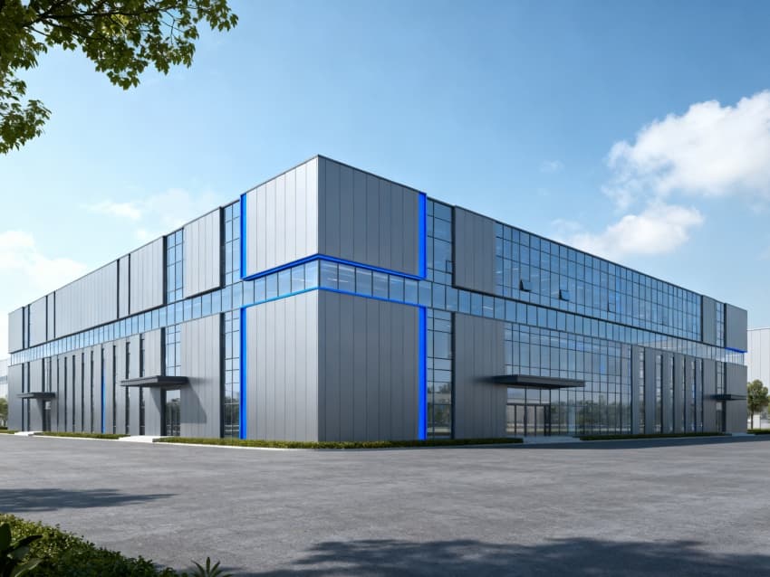 本项目为合肥半导体产业园核心标准厂房,聚焦半导体产业高洁净、高稳定、高灵活的生产需求,打造适配芯片制造及封装测试环节的专业化空间。外立面采用密封式节能幕墙设计,搭配防尘金属扣板,有效隔绝外部粉尘与温湿度干扰,满足半导体生产对外部环境的严苛要求。