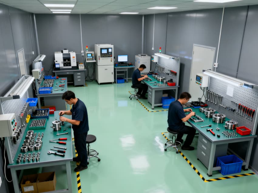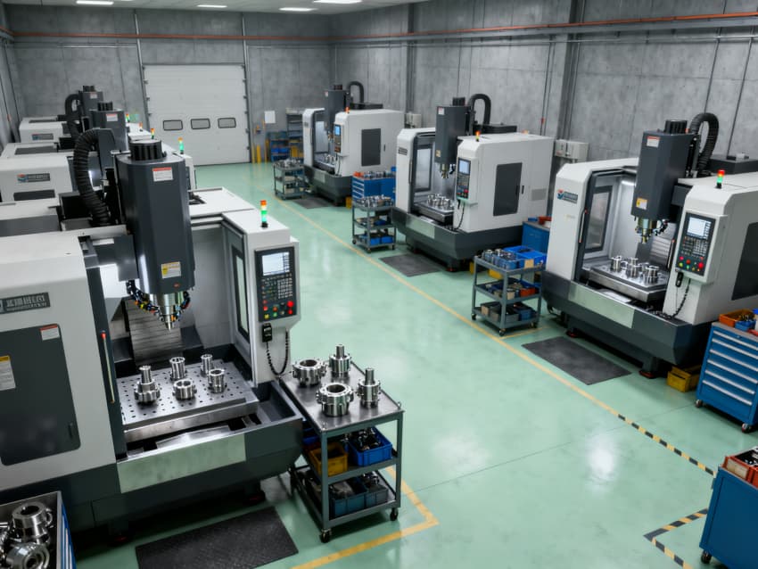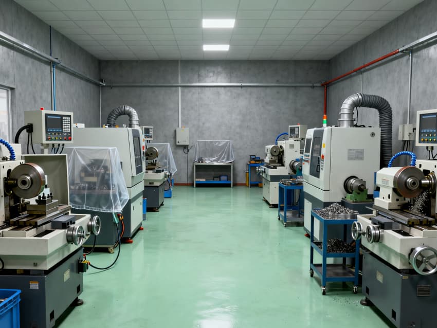 全车间统一预留标准化电源接口、压缩空气管路及 coolant 回收通道,层高5米适配各类大型CNC设备安装调试。地面隐形标识清晰划分加工区、通道区及安全区域,墙面张贴设备操作规范预留位。整体设计兼顾实用性与安全性,为精密CNC加工提供稳定、高效的生产环境,助力保障零件加工精度与生产效率。
