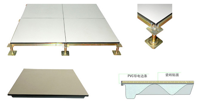 全钢陶瓷防静电地板系统有地板、横梁、支座组成。横梁和自身高度可调的支座用螺钉连结成稳固的下部支承系统,地板镶嵌入横梁围成的方格内。