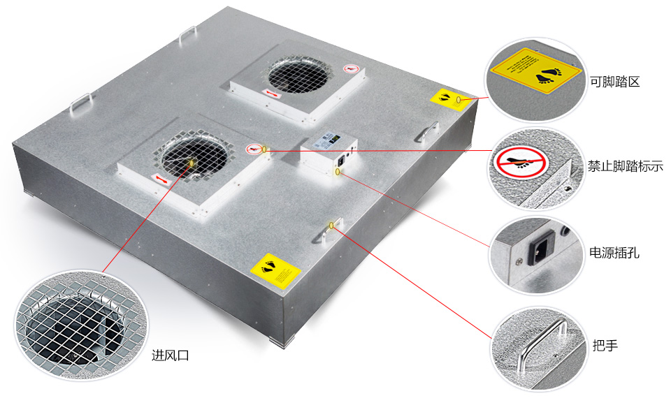 目前,各种FFU最多由以下几部分组成(按从上到下、从内到外的顺序),视不同厂家组成部分可能有所减少。