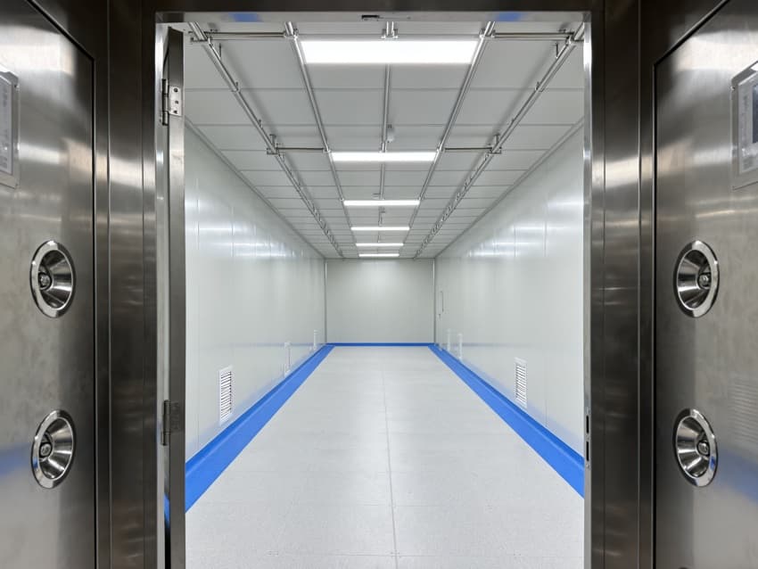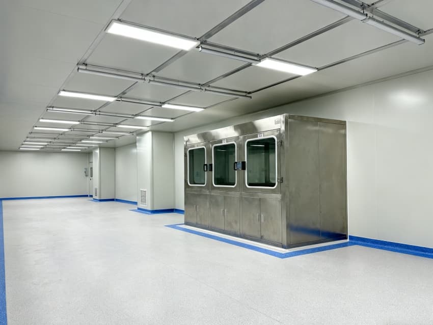 内部洁净车间按电子元件生产流程,划分成原料净化区、精密组装预备区、检测过渡区,各区域以密封式通道衔接,适配芯片、电路板等产品生产需求。车间洁净度执行万级标准(ISO8级),每立方米空气中≥0.5μm微粒数≤352000个,通过初效-中效-高效三级过滤系统,结合顶送底回气流组织,实现每小时22次空气置换。墙面用防静电洁净彩钢板,地面为环氧树脂自流平,温度稳定在23±2℃、湿度45±5%RH,有效避免灰尘、静电影响产品质量,符合电子行业生产规范。