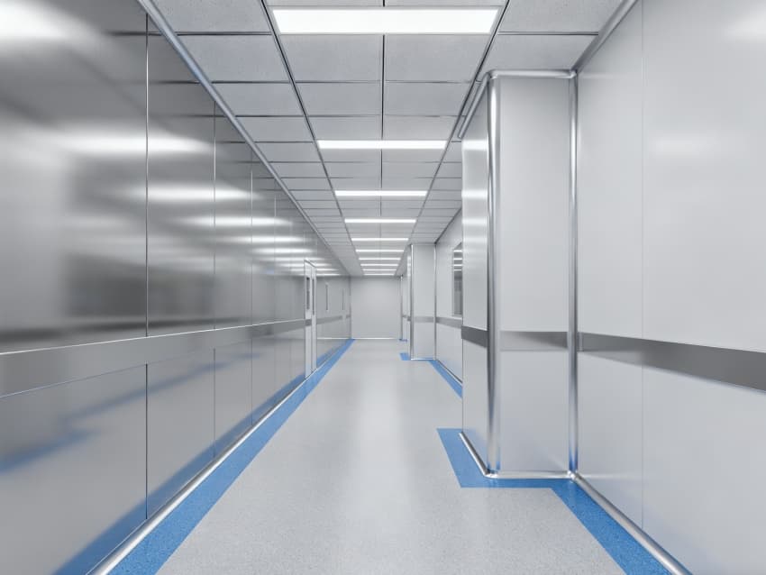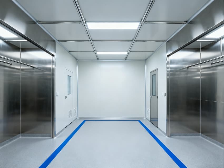 该电子厂净化工程含厂房外立面与内部洁净车间两大核心部分。外立面采用银灰色氟碳涂层钢板搭配双层中空钢化玻璃,既保障抗腐蚀、抗紫外线性能,又通过通透设计提升室内采光;同时预留设备检修口与新风系统进风口,兼顾外观与实用。
