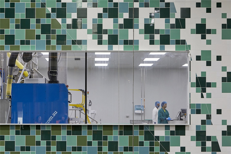 多彩的线条从附近的自然保护区一直延伸到位于生产区核心地带的巨型壁画上,吸引着员工和参观工厂的访客。产自本地的澳洲硬木和纹理丰富的墙面从外部景观“流进”室内,在自然光线的配合下营造出富有生机的氛围。