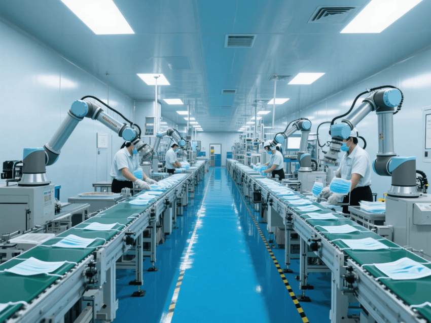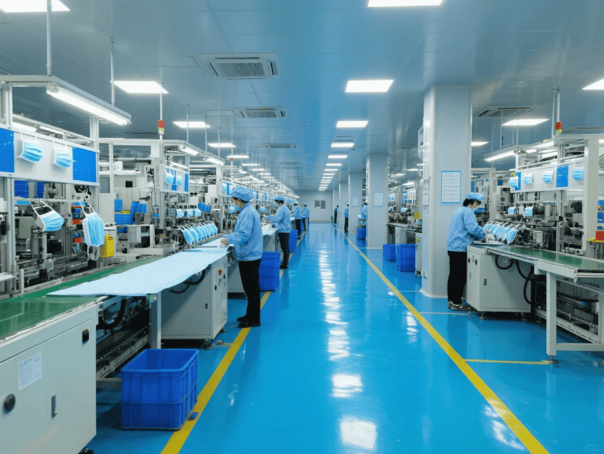 本方案采用"医疗工业极简风",符合YY/T0969-2013口罩行业标准。车间按功能分区:
